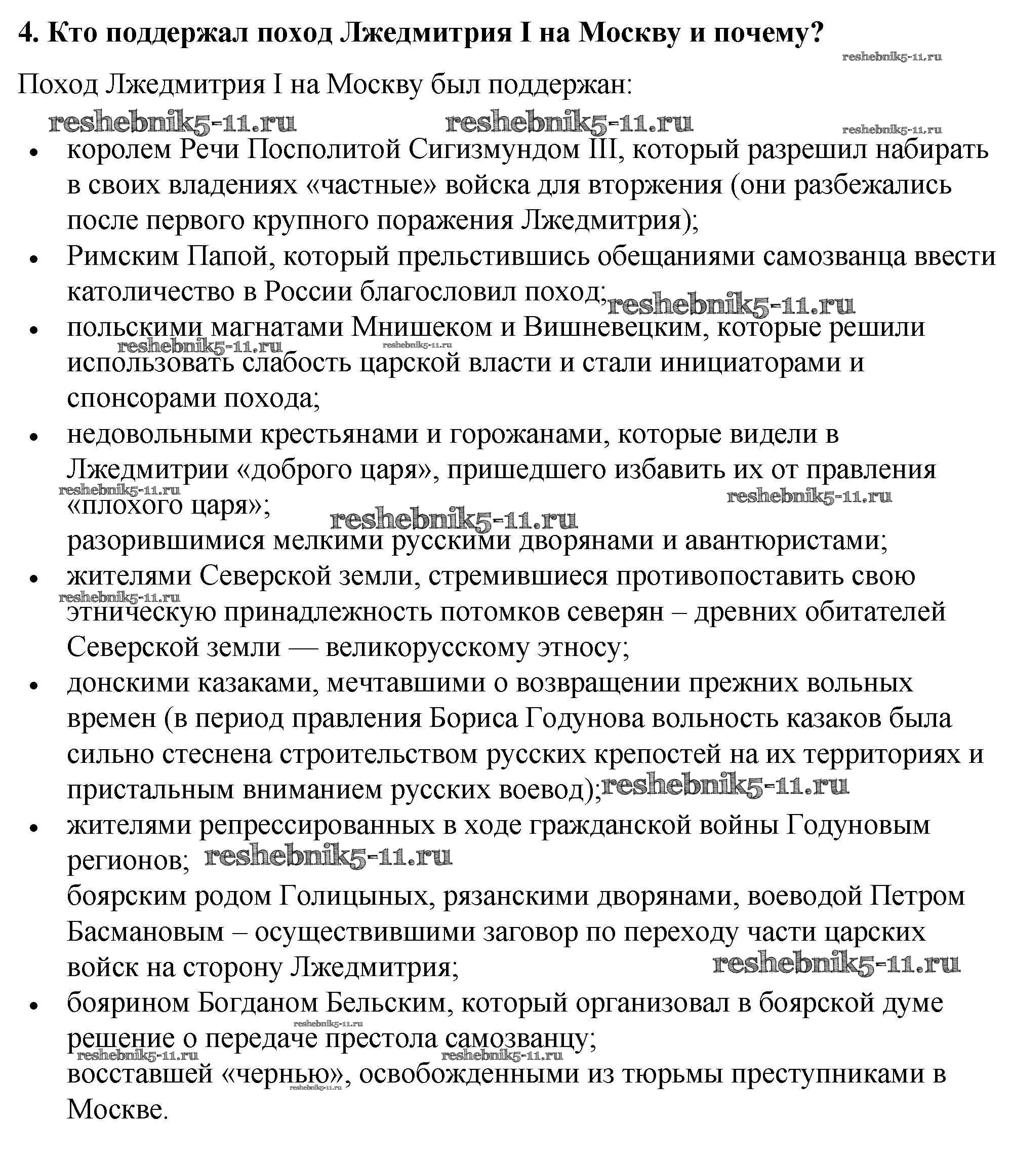 История за 7 класс Арсентьев Учебник Просвещение вопрос, задание 4