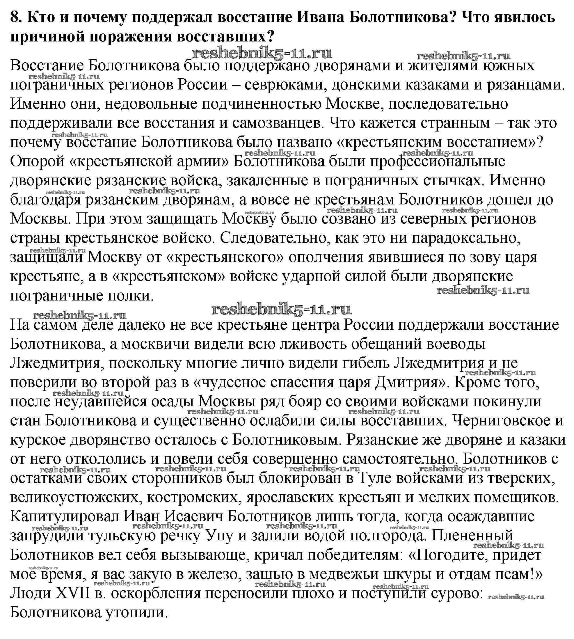 История за 7 класс Арсентьев Учебник Просвещение вопрос, задание 8