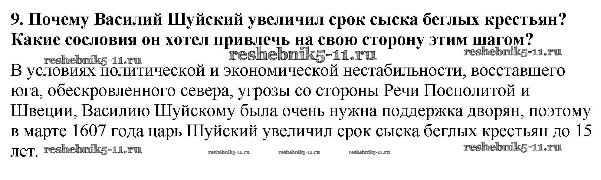 История за 7 класс Арсентьев Учебник Просвещение вопрос, задание 9