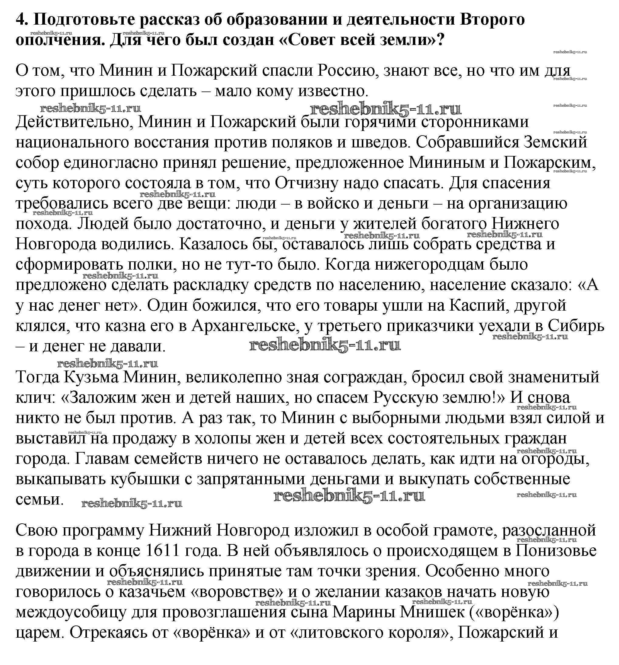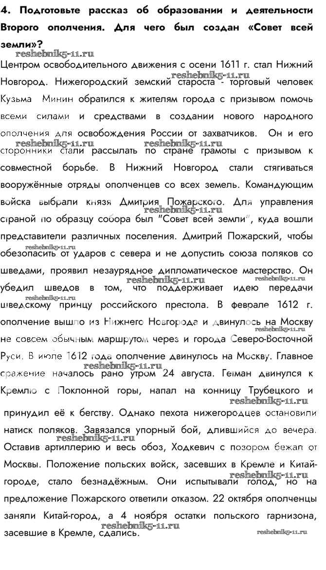 История за 7 класс Арсентьев Учебник Просвещение вопрос, задание 4