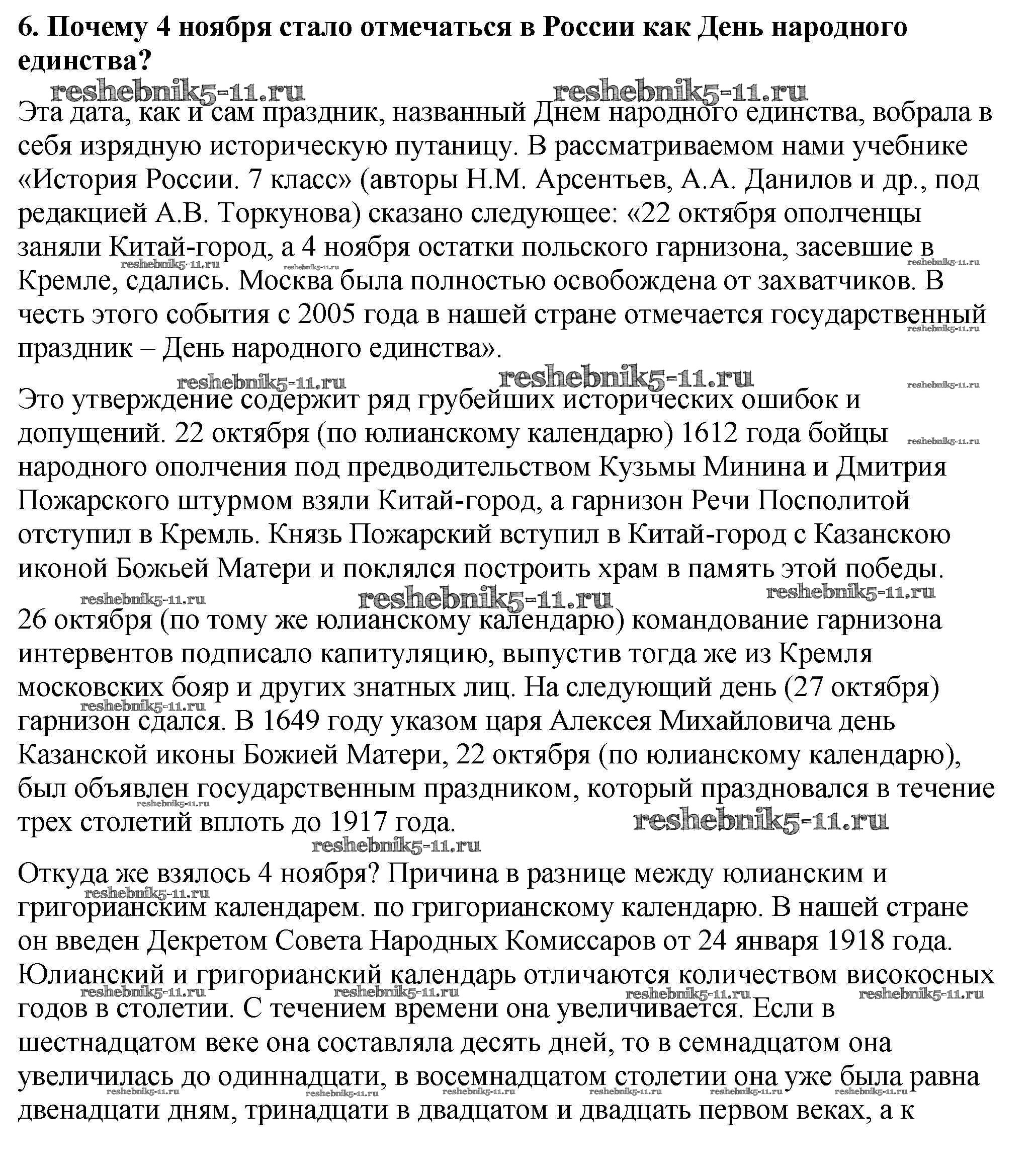 История за 7 класс Арсентьев Учебник Просвещение вопрос, задание 6