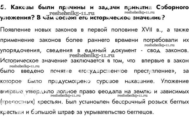 История за 7 класс Арсентьев Учебник Просвещение вопрос, задание 5