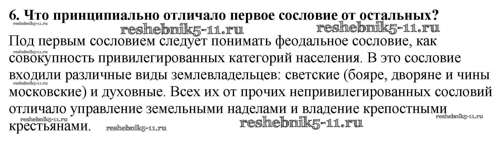 Готовая домашняя работа с ответами по Истории за 7 класс Арсентьев, Данилов, Курукин Учебник Часть 1, 2 Просвещение 2016 ФГОС - Вопросы и задания 6