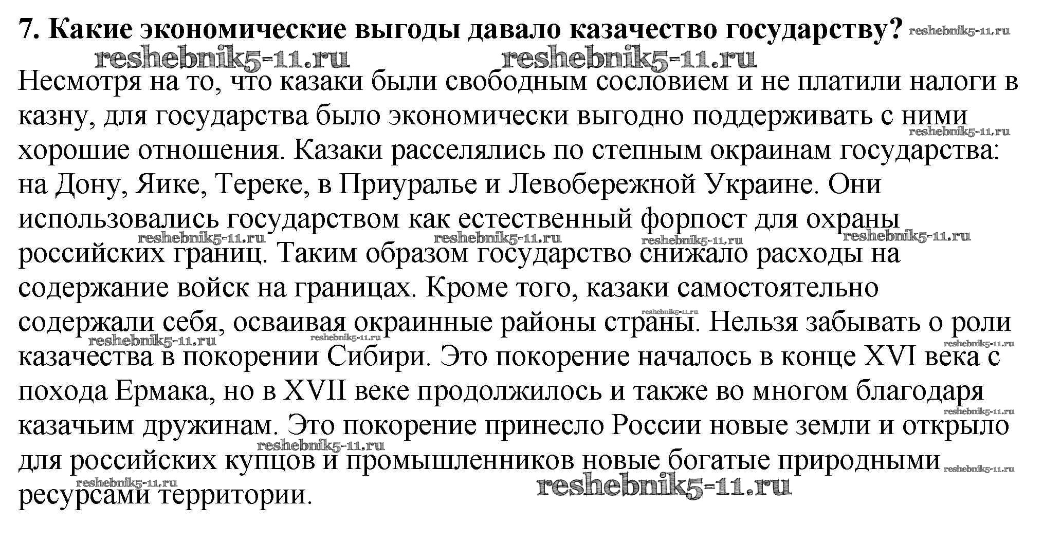 История за 7 класс Арсентьев Учебник Просвещение вопрос, задание 7