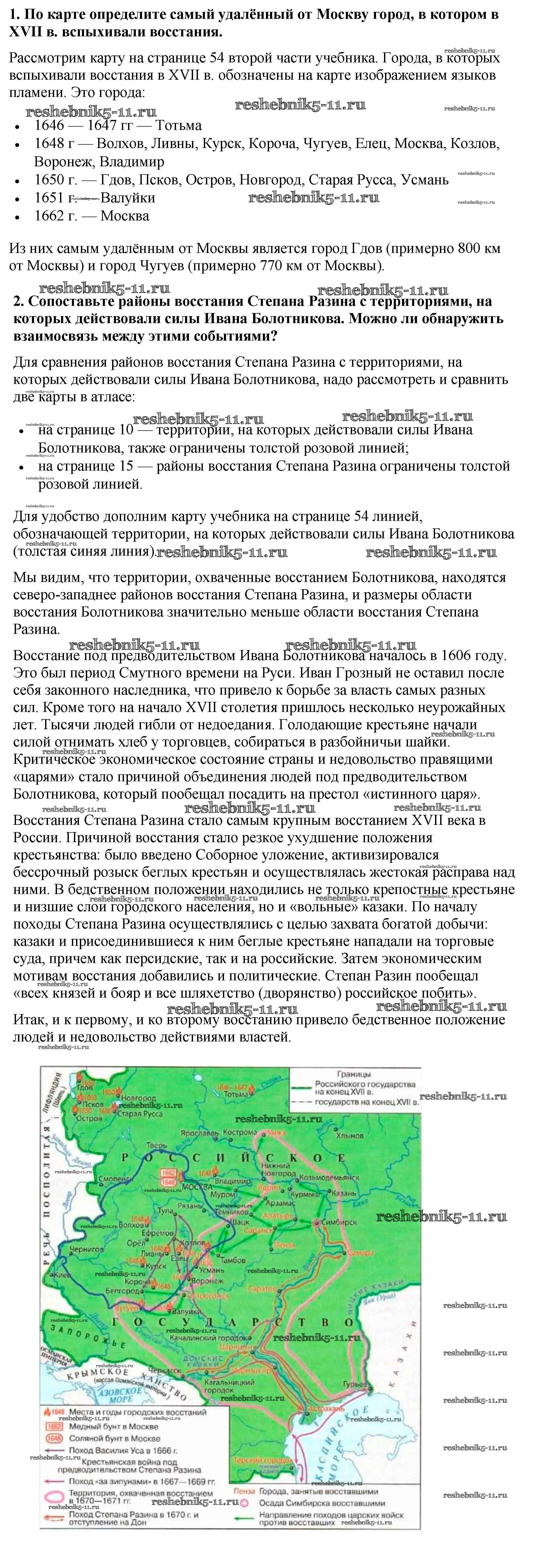 Готовая домашняя работа с ответами по Истории за 7 класс Арсентьев, Данилов, Курукин Учебник Часть 1, 2 Просвещение 2016 ФГОС - Работаем с картой стр.55