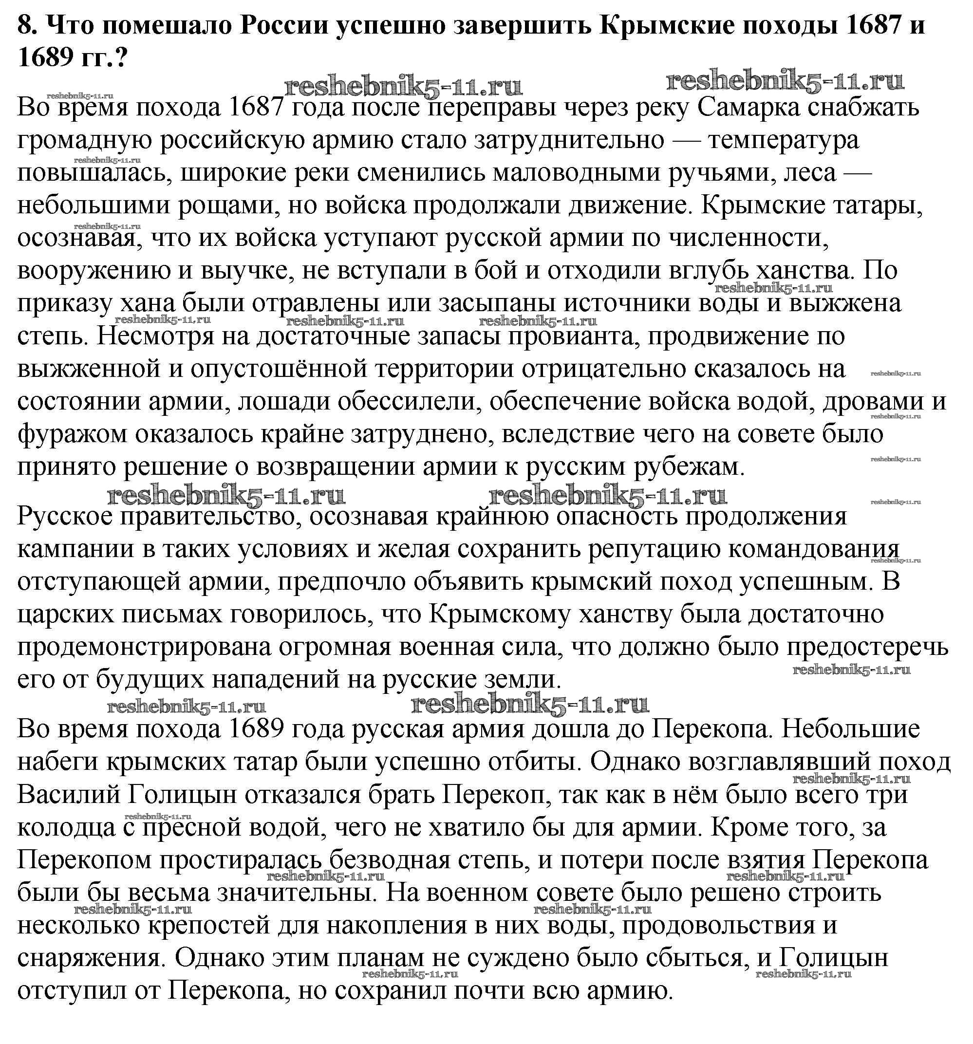 Готовая домашняя работа с ответами по Истории за 7 класс Арсентьев, Данилов, Курукин Учебник Часть 1, 2 Просвещение 2016 ФГОС - Вопросы и задания 8