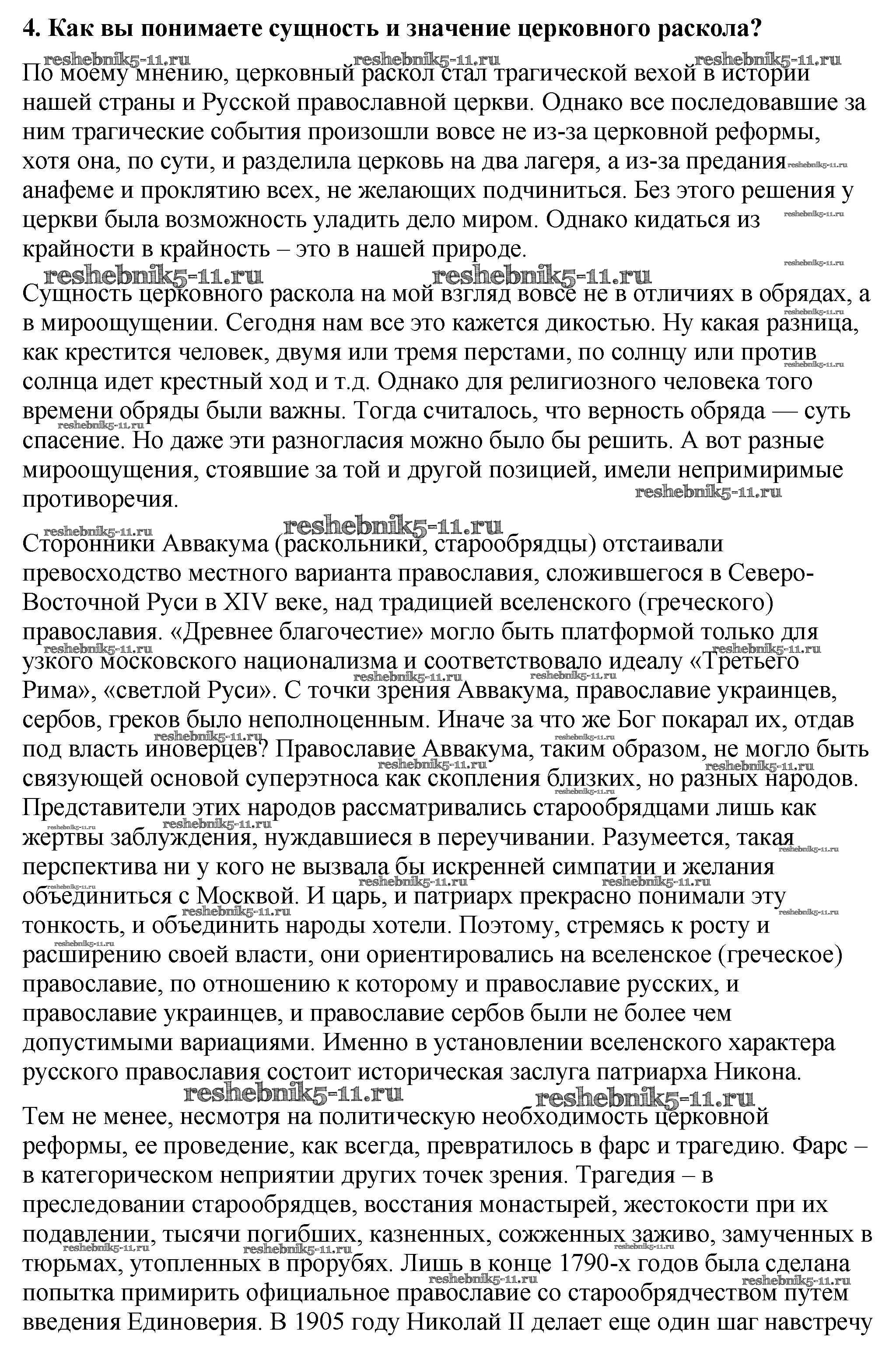 История за 7 класс Арсентьев Учебник Просвещение вопрос, задание 4