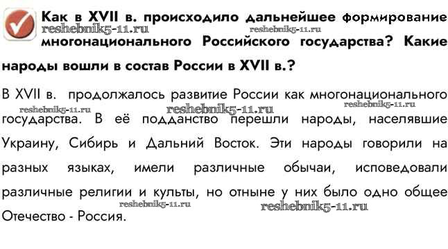 Решебник №1 / глава 2 / народы России в XVII в. / вопрос в начале параграфа / 1