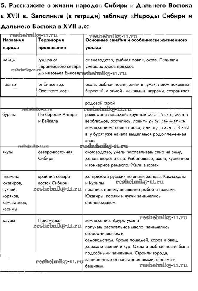 Решебник №2 / глава 2 / народы России в XVII в. / вопрос, задание / 5