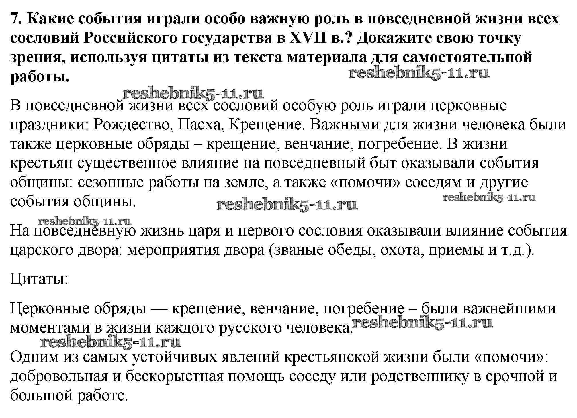 Решебник №2 / глава 2 / сословный быт и картина мира русского человека в XVII в. / вопрос, задание / 7
