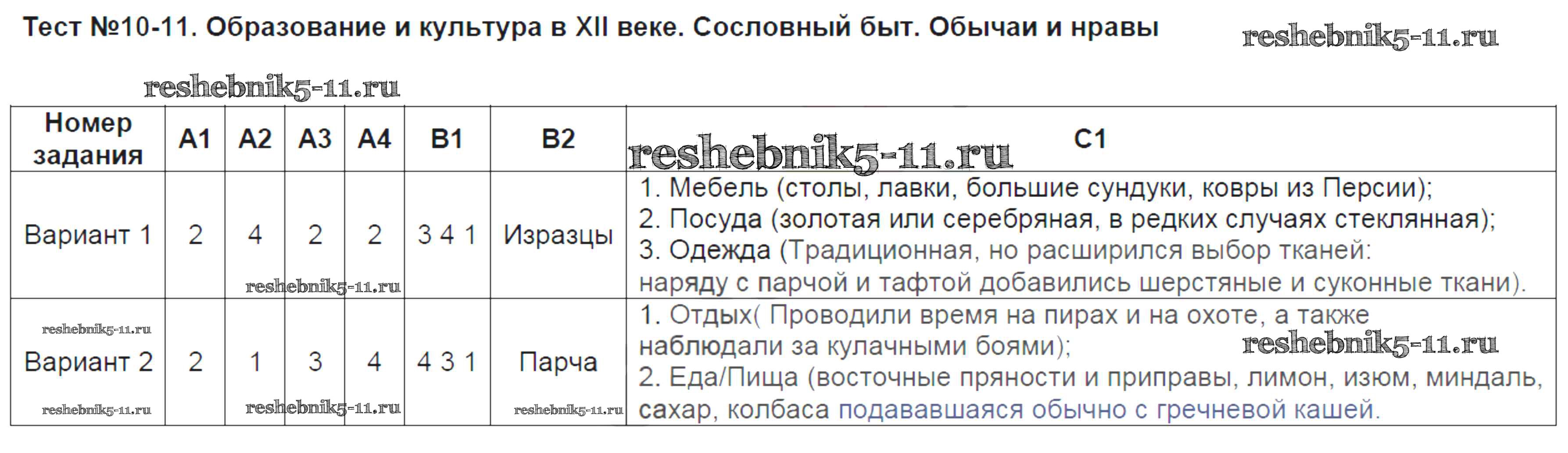Готовая домашняя работа с ответами по Истории за 7 класс Смирнов Контрольные измерительные материалы Экзамен 2015 ФГОС - Тесты 10-11