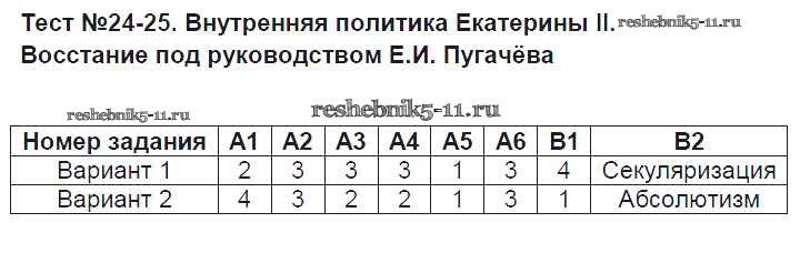 Готовая домашняя работа с ответами по Истории за 7 класс Смирнов Контрольные измерительные материалы Экзамен 2015 ФГОС - Тесты 24-25