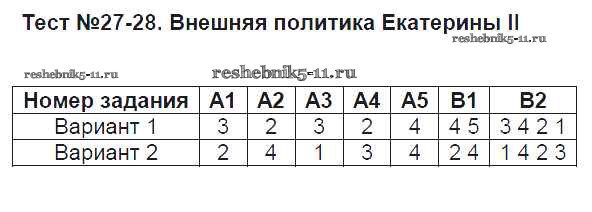 Готовая домашняя работа с ответами по Истории за 7 класс Смирнов Контрольные измерительные материалы Экзамен 2015 ФГОС - Тесты 27-28