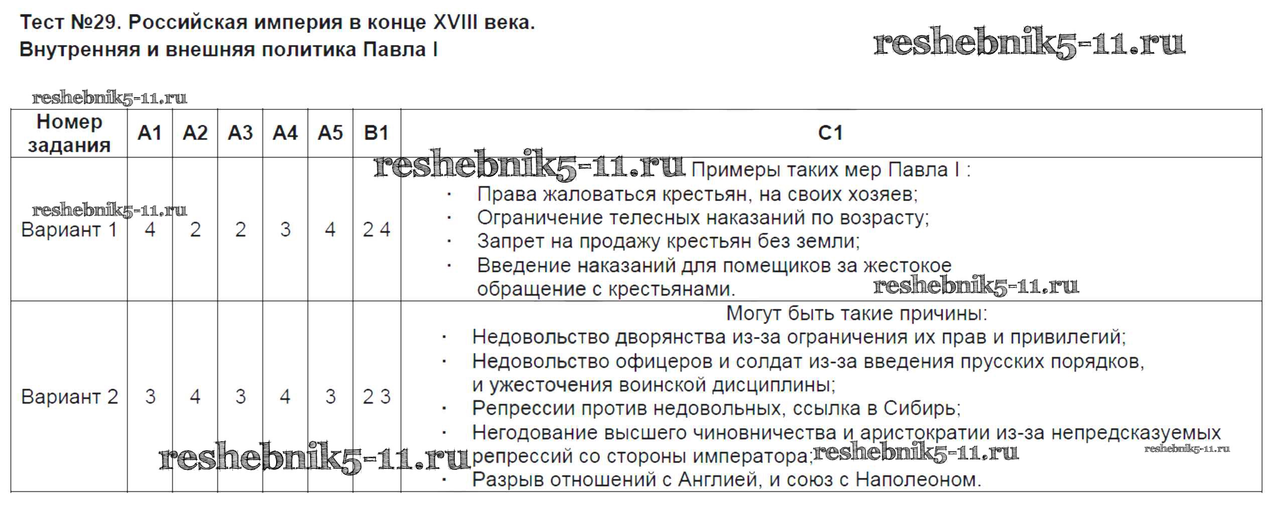 Готовая домашняя работа с ответами по Истории за 7 класс Смирнов Контрольные измерительные материалы Экзамен 2015 ФГОС - Тесты 29