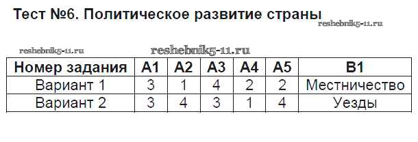 Готовая домашняя работа с ответами по Истории за 7 класс Смирнов Контрольные измерительные материалы Экзамен 2015 ФГОС - Тесты 6