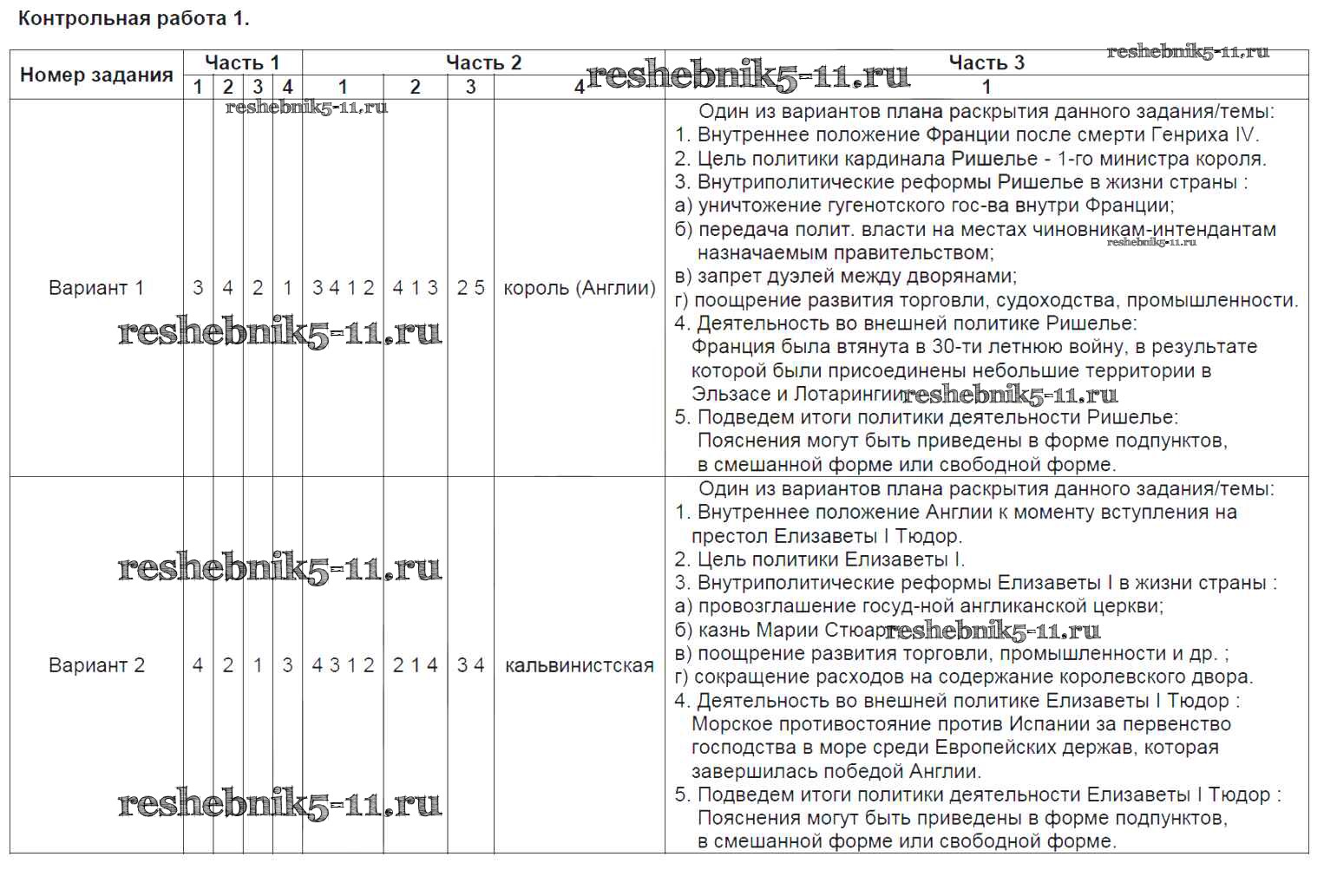 Готовая домашняя работа с ответами по Истории за 7 класс Баранов Проверочные и контрольные работы УМК Просвещение 2018 ФГОС - Контрольные работы 1