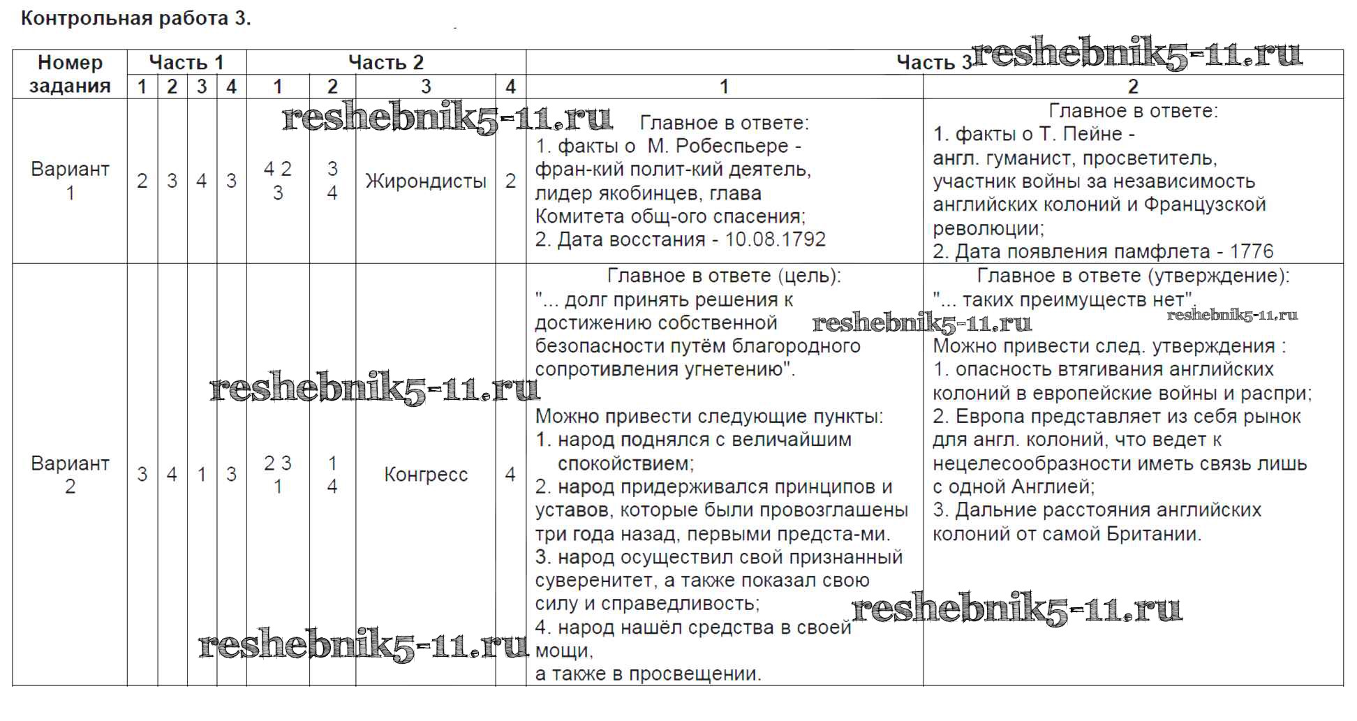 Готовая домашняя работа с ответами по Истории за 7 класс Баранов Проверочные и контрольные работы УМК Просвещение 2018 ФГОС - Контрольные работы 3