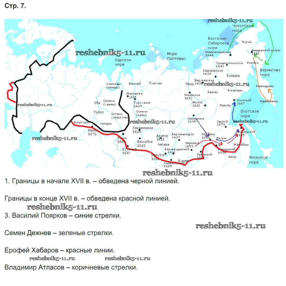Готовая домашняя работа с ответами по Истории за 7 класс Павлова Контурные карты Экзамен 2014 ФГОС - Страницы 7