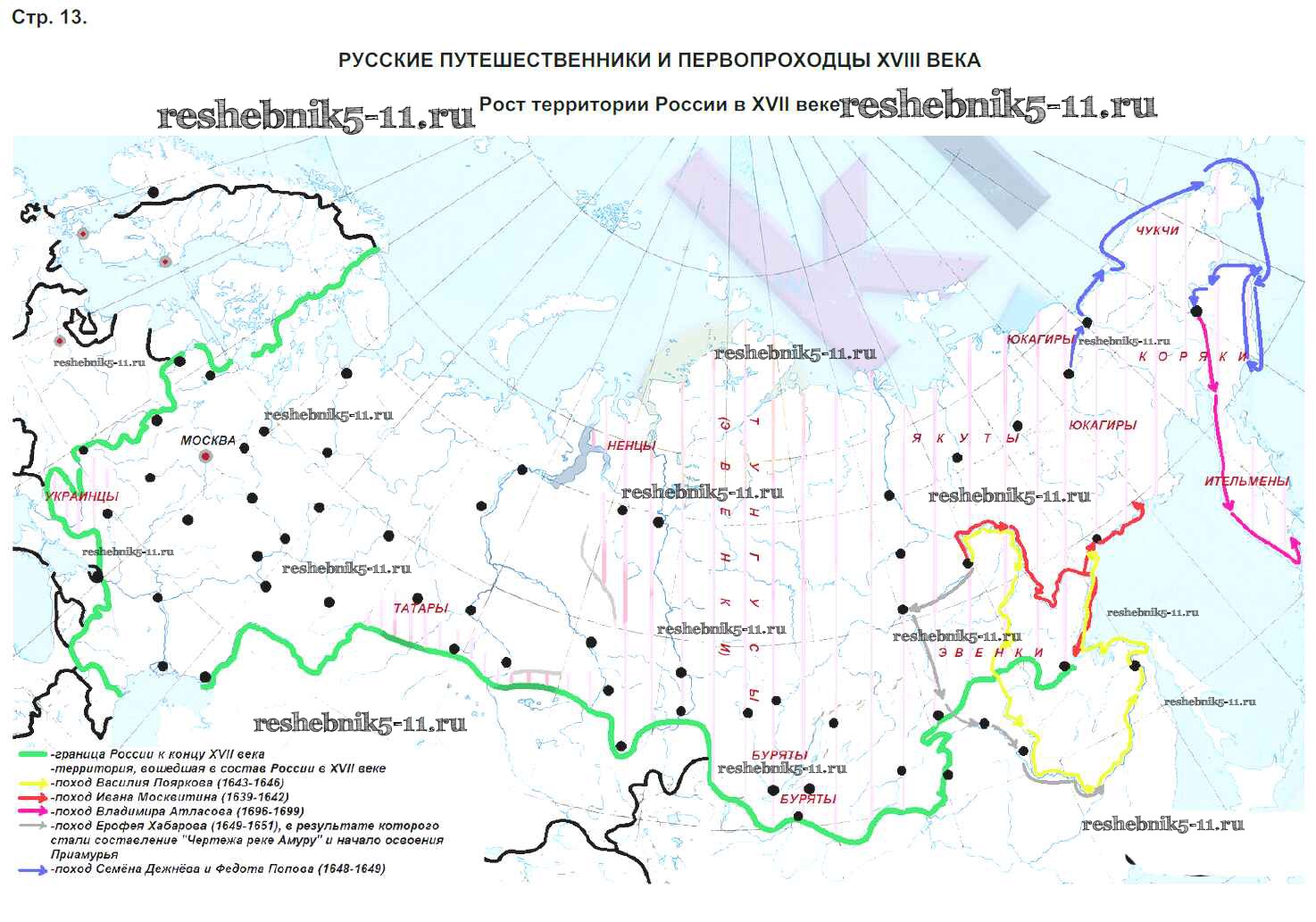 Готовая домашняя работа с ответами по Истории за 7 класс Тороп Контурные карты УМК Просвещение 2020 ФГОС - Страницы 13