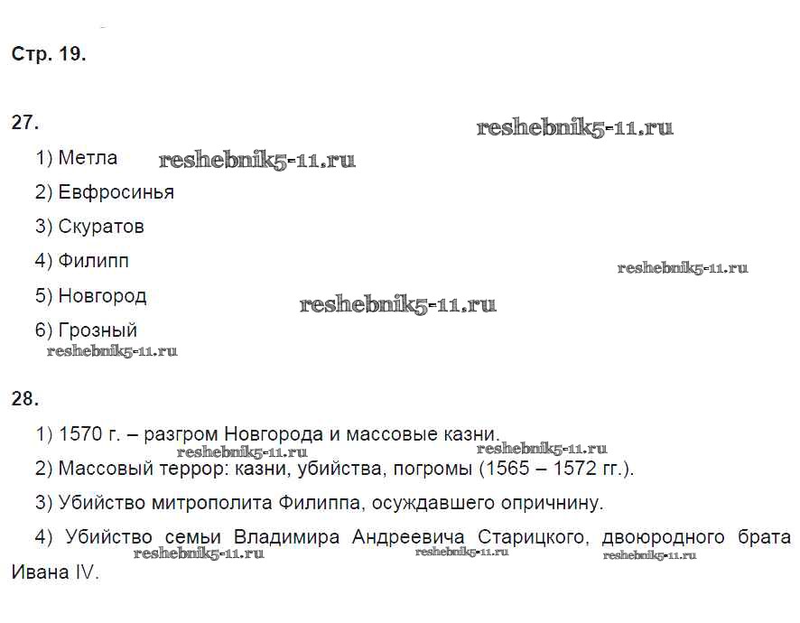 Готовая домашняя работа с ответами по Истории за 7 класс Кочегаров Рабочая тетрадь Инновационная школа Русское слово 2017 ФГОС - Страницы 19