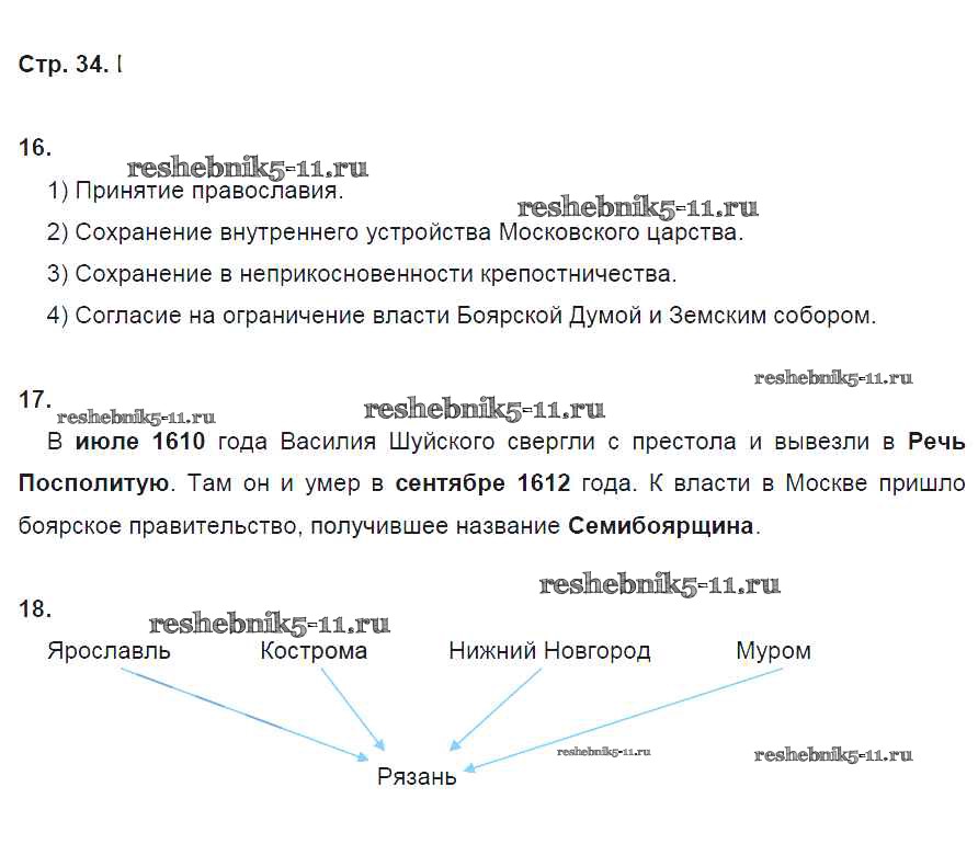 Готовая домашняя работа с ответами по Истории за 7 класс Кочегаров Рабочая тетрадь Инновационная школа Русское слово 2017 ФГОС - Страницы 34