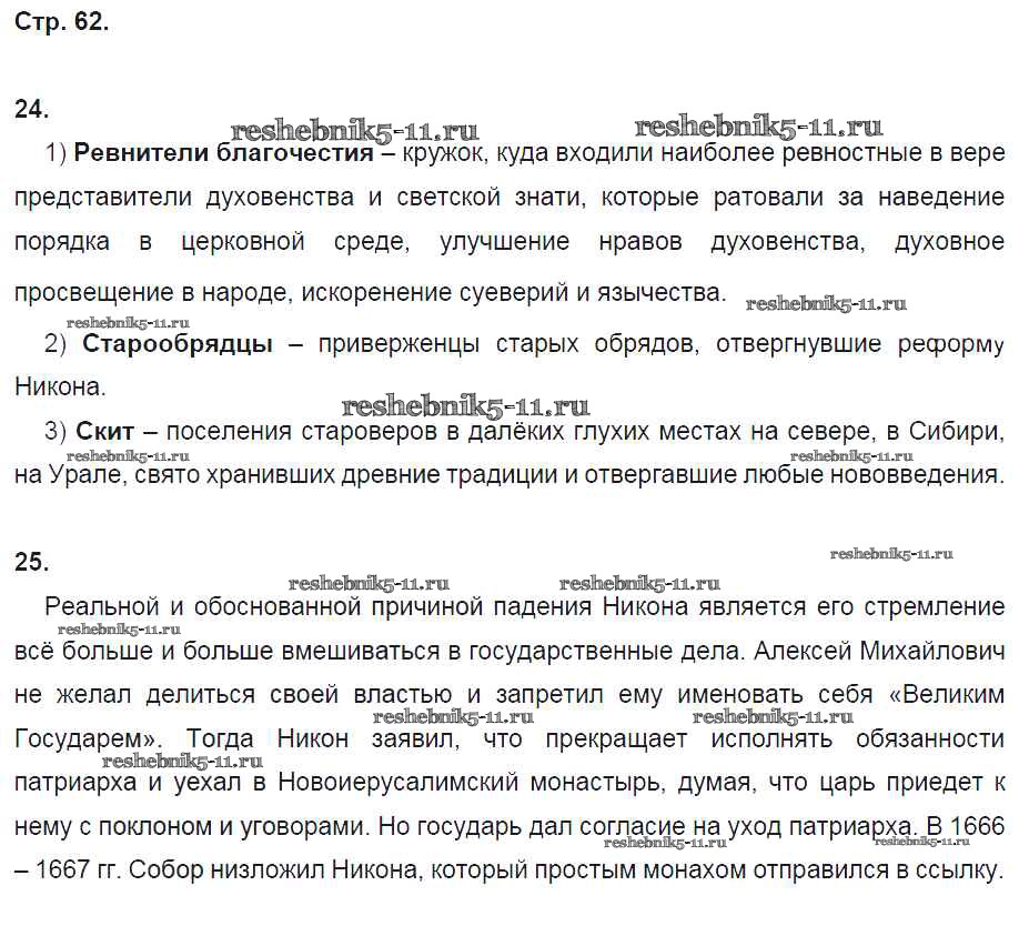 Готовая домашняя работа с ответами по Истории за 7 класс Кочегаров Рабочая тетрадь Инновационная школа Русское слово 2017 ФГОС - Страницы 62