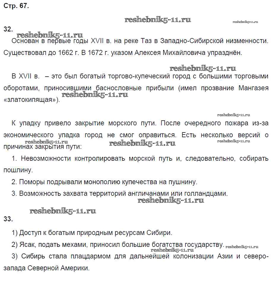 Готовая домашняя работа с ответами по Истории за 7 класс Кочегаров Рабочая тетрадь Инновационная школа Русское слово 2017 ФГОС - Страницы 67