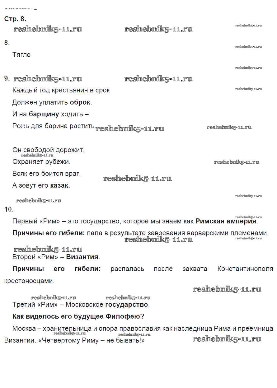 Готовая домашняя работа с ответами по Истории за 7 класс Кочегаров Рабочая тетрадь Инновационная школа Русское слово 2017 ФГОС - Страницы 8