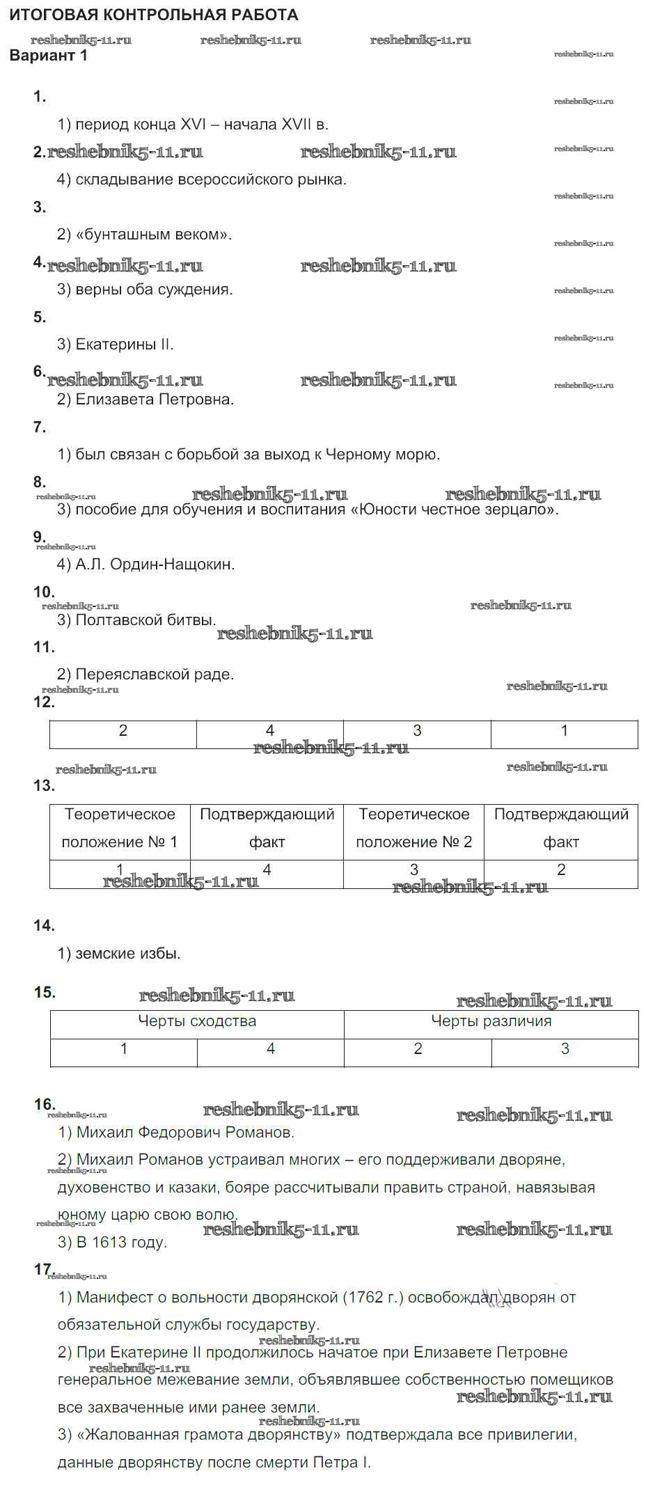 Готовая домашняя работа с ответами по Истории за 7 класс Акиньшина, Артасов Рабочая тетрадь Национальное образование 2013 ФГОС - Итоговая контрольная работа Вариант 1