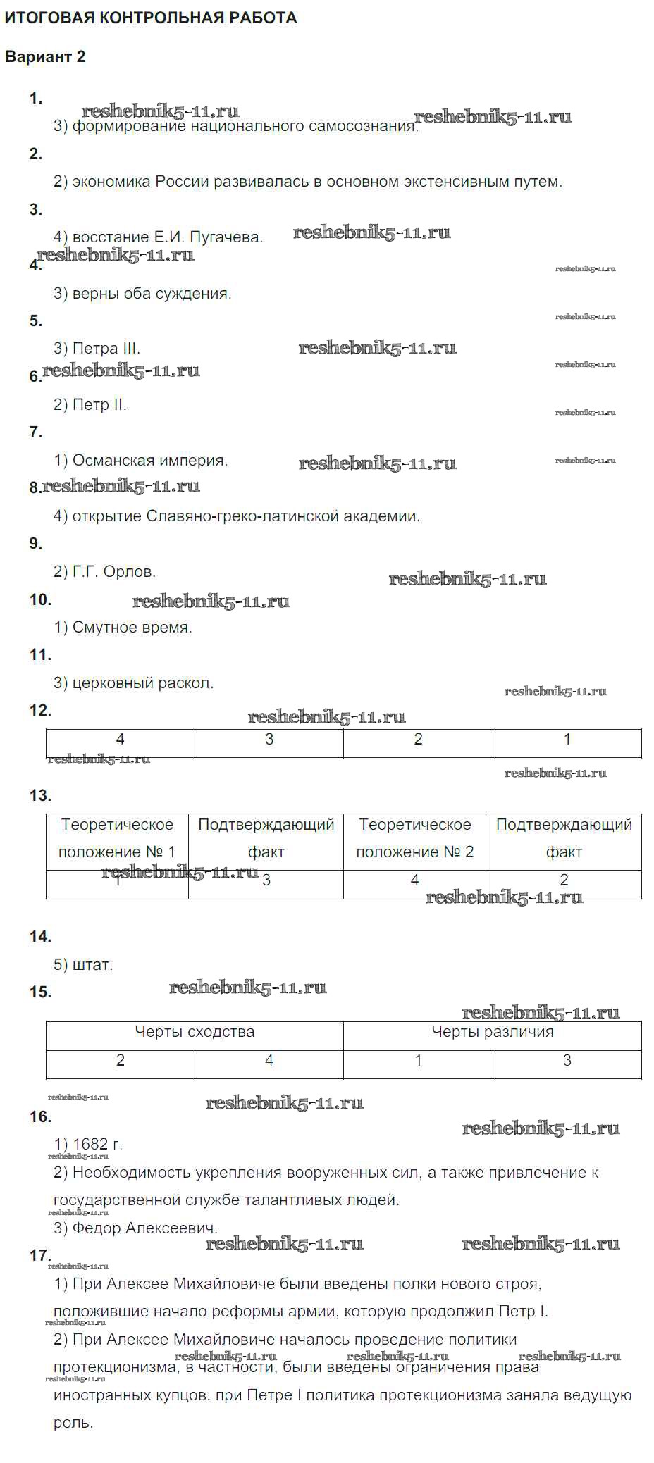 Готовая домашняя работа с ответами по Истории за 7 класс Акиньшина, Артасов Рабочая тетрадь Национальное образование 2013 ФГОС - Итоговая контрольная работа Вариант 2