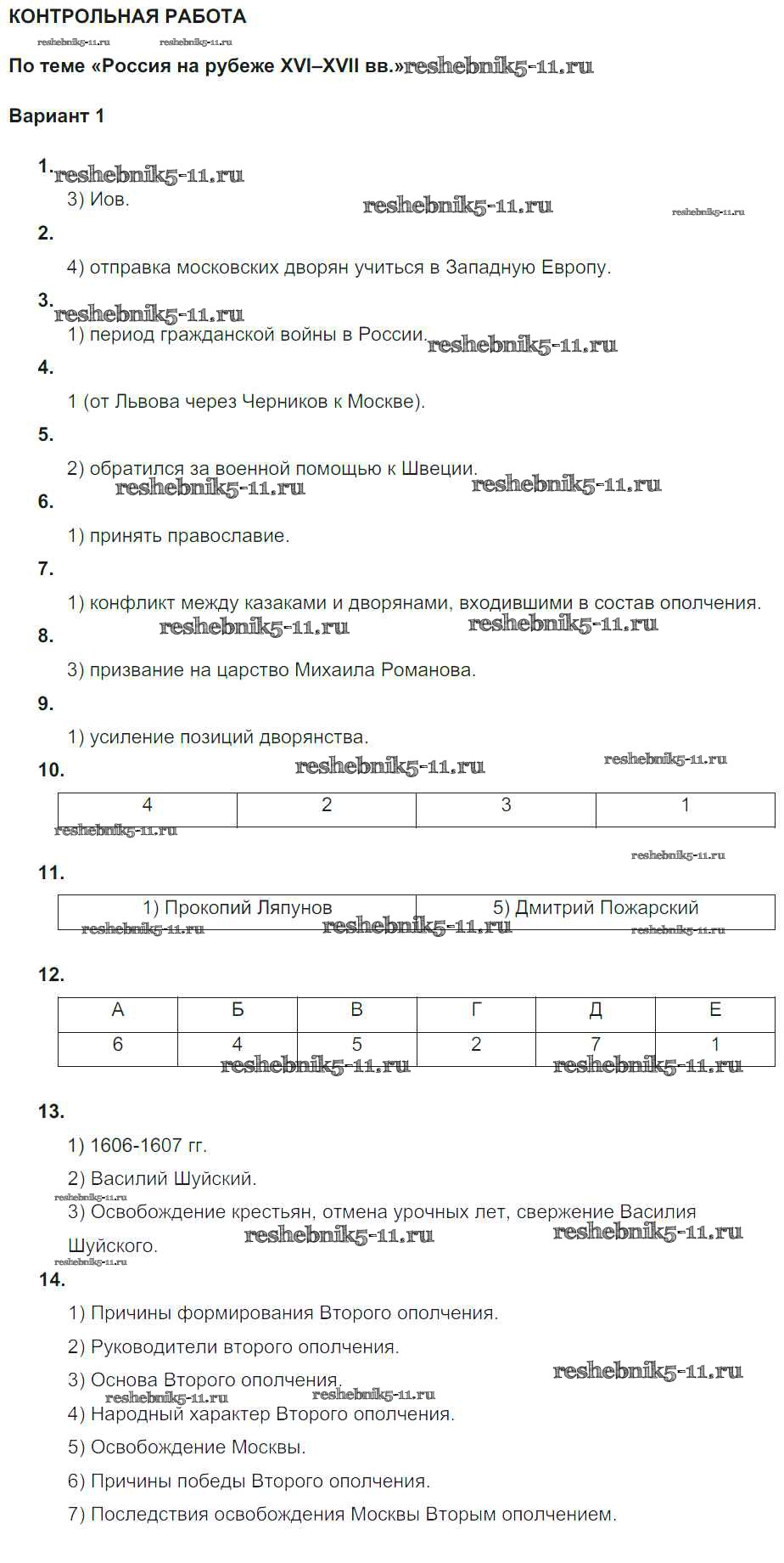 Решебник / кр. Россия на рубеже XVI-XVII вв / вариант 1