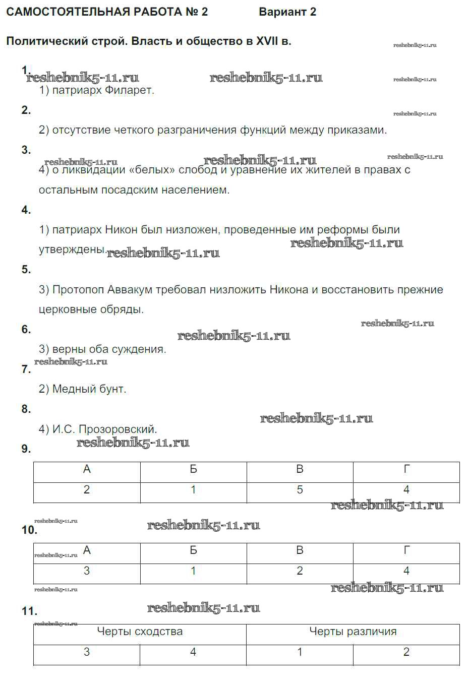 Решебник / Россия в XVII веке / ср-2 / вариант 2