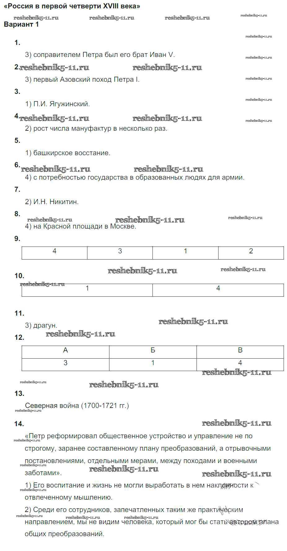 Решебник / Россия в первой четверти XVIII века / ср-1 / вариант 1