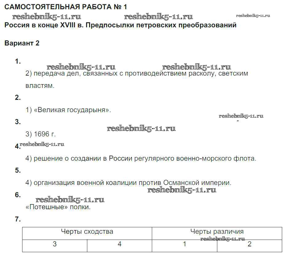 Решебник / Россия в первой четверти XVIII века / ср-2 / вариант 2