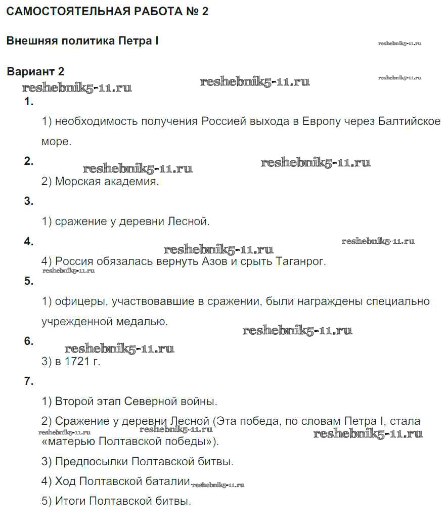 Решебник / Россия в первой четверти XVIII века / ср-3 / вариант 2