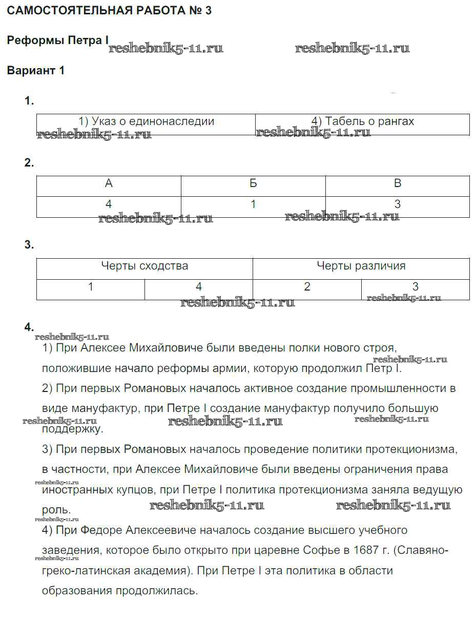 Решебник / Россия в первой четверти XVIII века / ср-4 / вариант 1