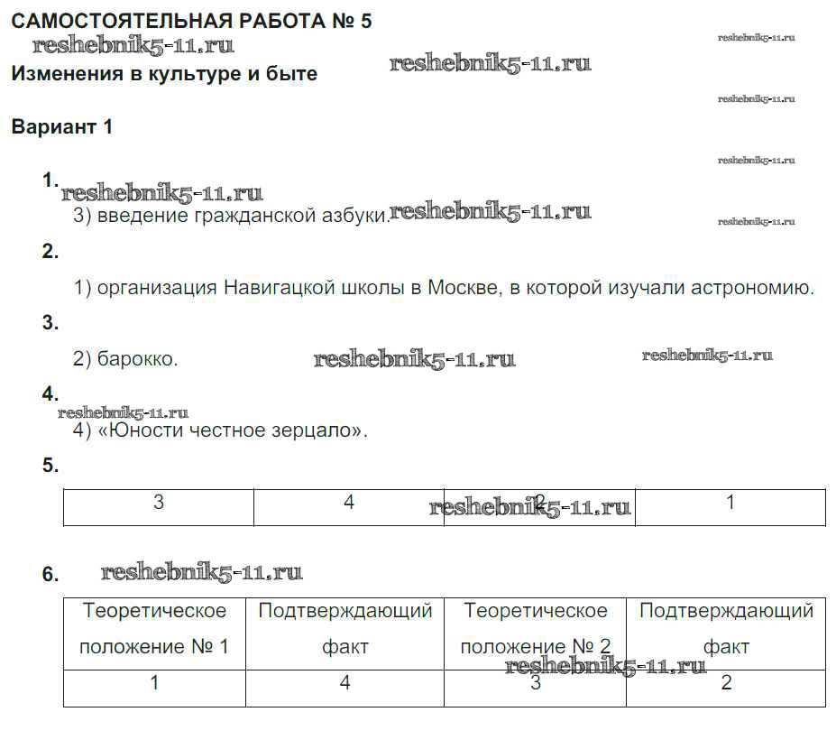 Решебник / Россия в первой четверти XVIII века / кр / вариант 1