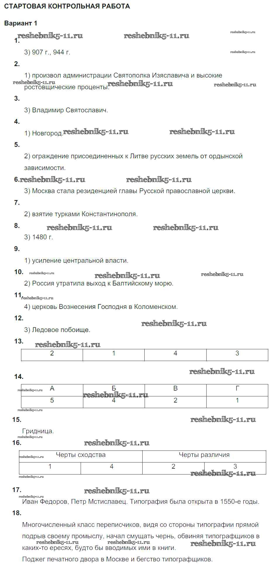 Готовая домашняя работа с ответами по Истории за 7 класс Акиньшина, Артасов Рабочая тетрадь Национальное образование 2013 ФГОС - Стартовая контрольная работа Вариант 1