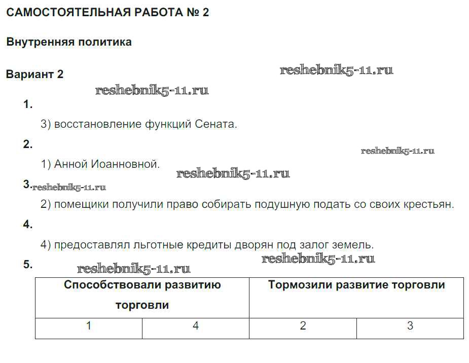 Решебник / Российская империя в 1725-1762 гг / ср-2 / вариант 2