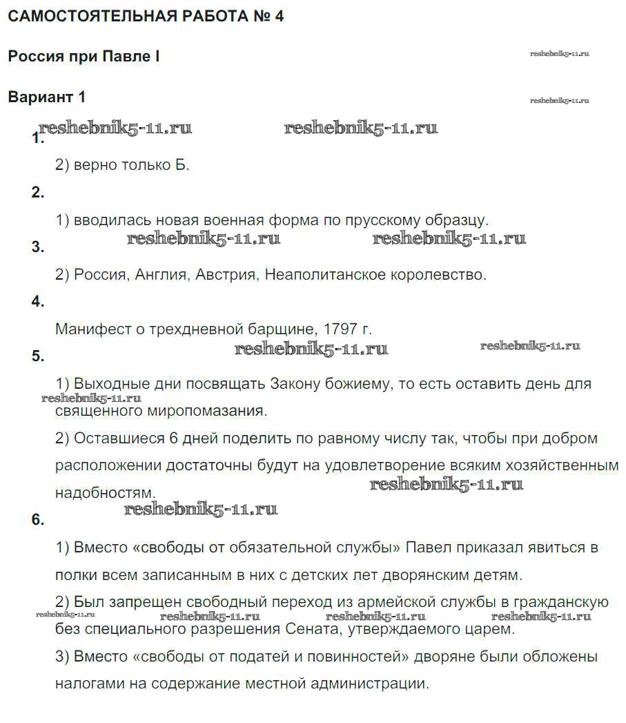 Решебник / Российская империя в 1762-1801 гг / ср-4 / вариант 1