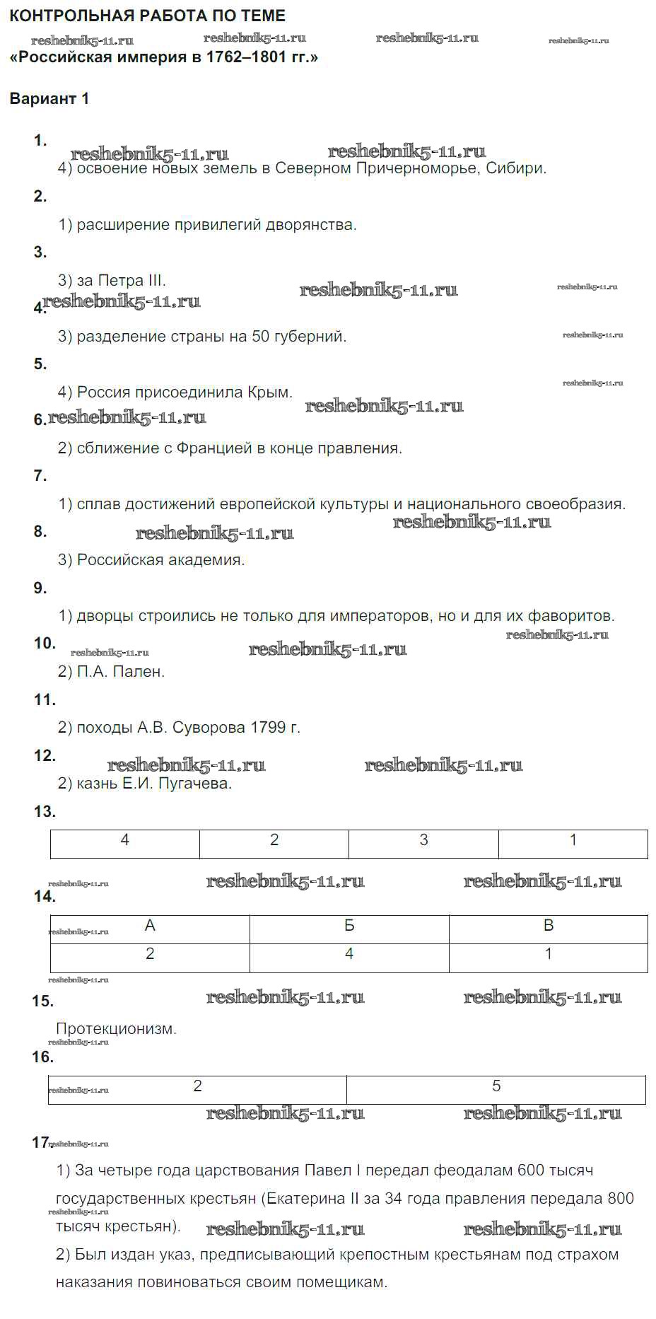 Решебник / Российская империя в 1762-1801 гг / кр / вариант 1