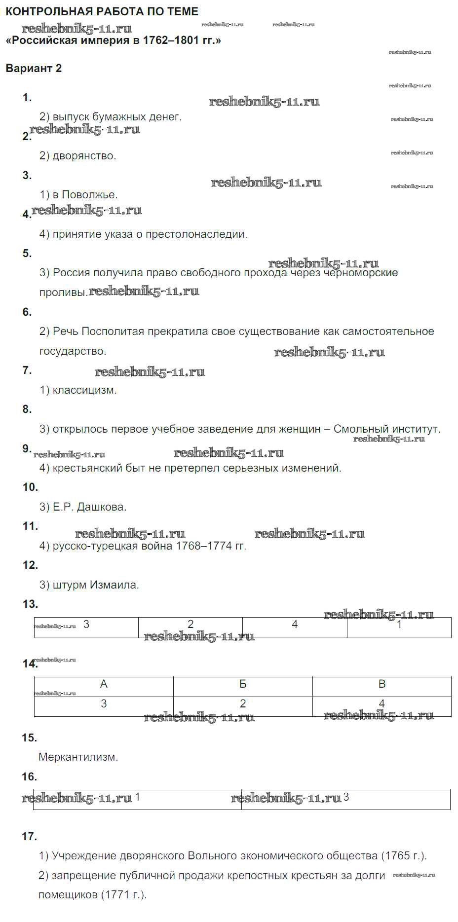 Решебник / Российская империя в 1762-1801 гг / кр / вариант 2