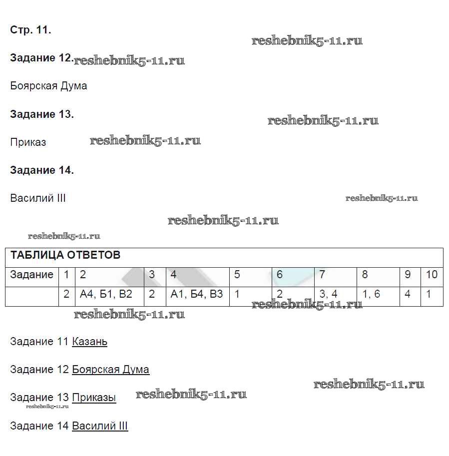 Готовая домашняя работа с ответами по Истории за 7 класс Артасов Контрольные работы УМК Просвещение 2016 ФГОС - Страницы 11