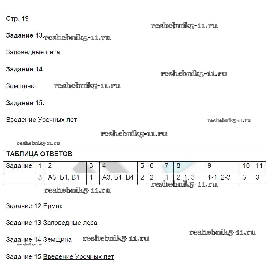 Готовая домашняя работа с ответами по Истории за 7 класс Артасов Контрольные работы УМК Просвещение 2016 ФГОС - Страницы 19
