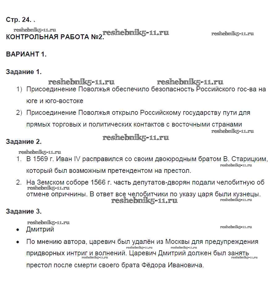 Готовая домашняя работа с ответами по Истории за 7 класс Артасов Контрольные работы УМК Просвещение 2016 ФГОС - Страницы 24