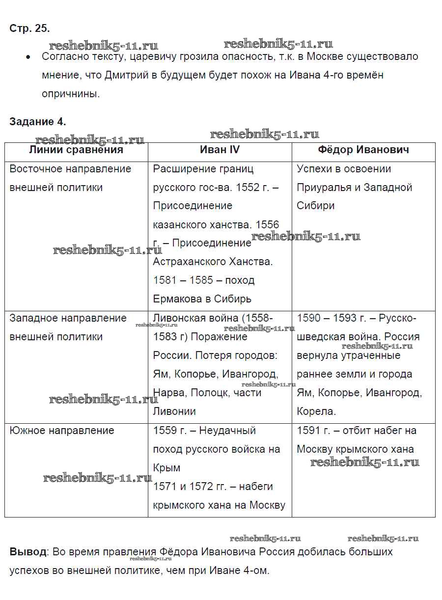 Готовая домашняя работа с ответами по Истории за 7 класс Артасов Контрольные работы УМК Просвещение 2016 ФГОС - Страницы 25
