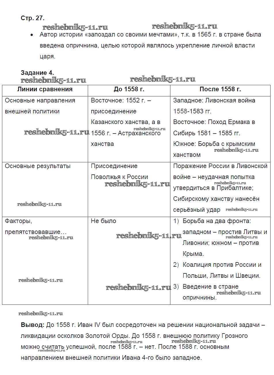 Готовая домашняя работа с ответами по Истории за 7 класс Артасов Контрольные работы УМК Просвещение 2016 ФГОС - Страницы 27