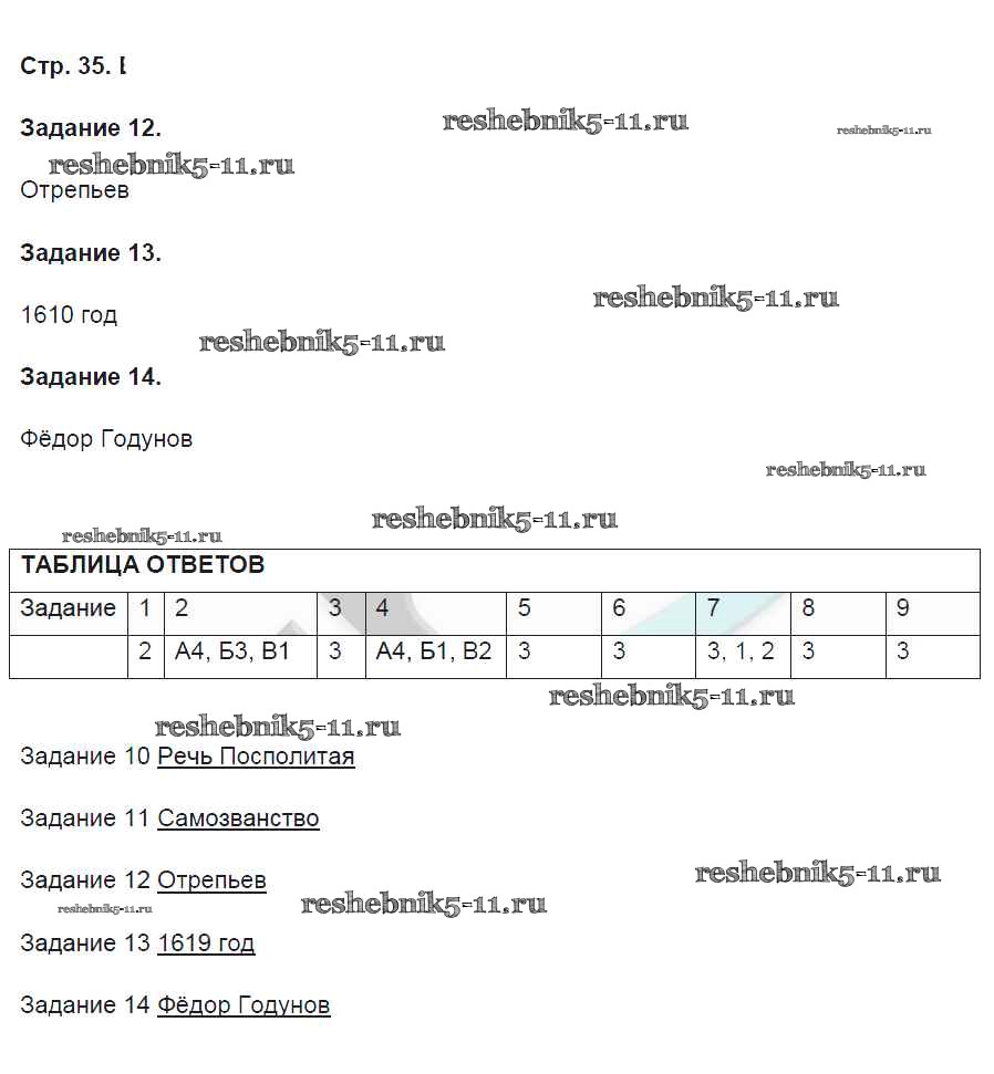 Готовая домашняя работа с ответами по Истории за 7 класс Артасов Контрольные работы УМК Просвещение 2016 ФГОС - Страницы 35