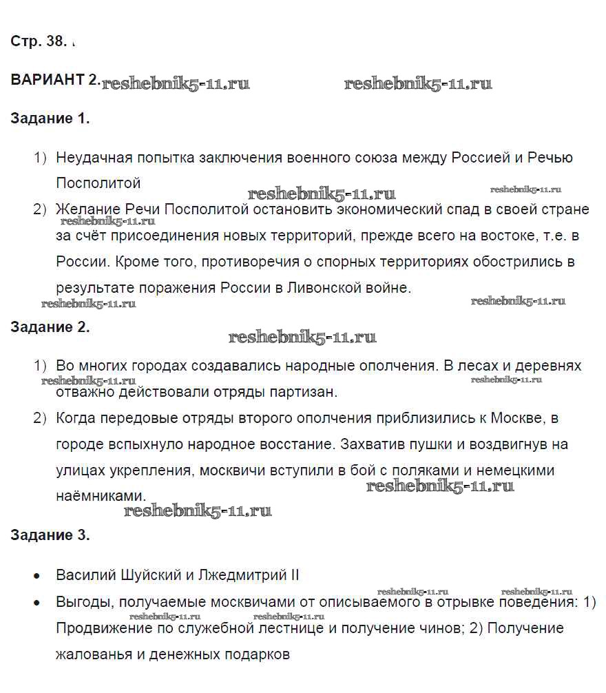 Готовая домашняя работа с ответами по Истории за 7 класс Артасов Контрольные работы УМК Просвещение 2016 ФГОС - Страницы 38