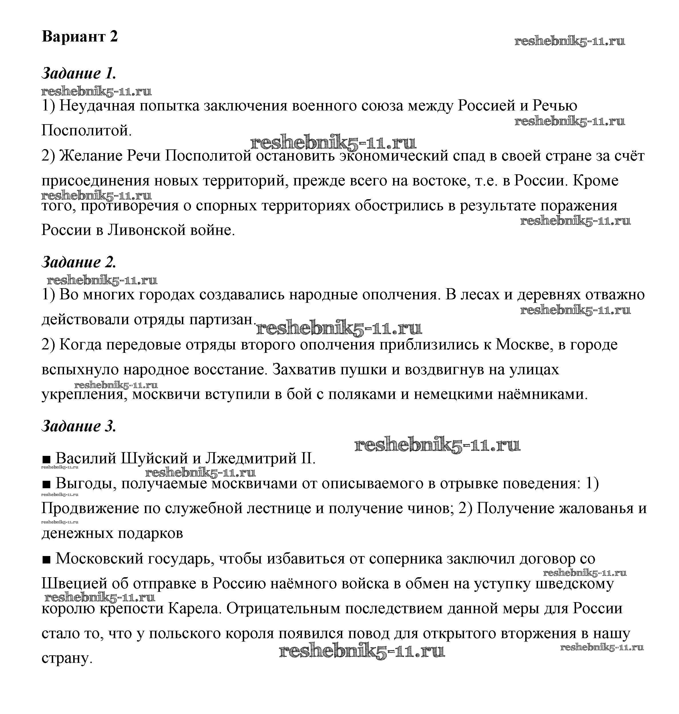 История за 7 класс Артасов Контрольные работы УМК Просвещение страница 38